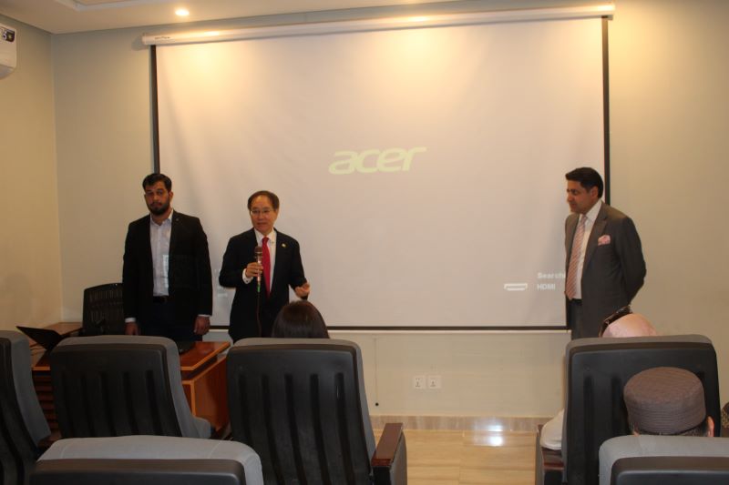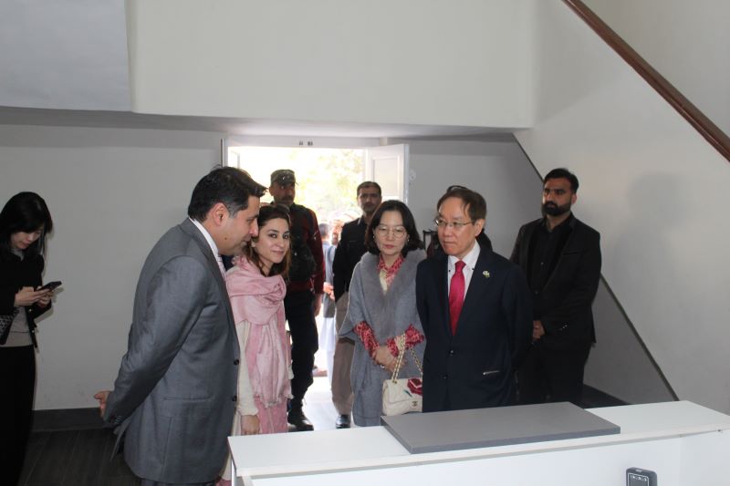 Korean Ambassador to Pakistan, H.E Mr. Park Ki Jun has expressed commendation over the endeavor by Aziz Jan Trust (AJT) of equipping youth with modern Information Technology (IT) skills with the objective of fostering opportunities that empower individuals to grow and make earnings. The Korean envoy expressed his appreciation during visit to Mohsin and Huma Mass IT Training Institute (MHIT) Peshawar. Chief Executive Officer (CEO) Aziz Jan Trust, Afan Aziz who is also Honorary Consul of South Korea for Khyber Pakhtunkhwa accompanied the Korean Ambassador. The visiting guest was briefed that Mohsin and Huma IT Training Institute established on August 27, 2023 by Aziz Jan Trust in collaboration with Saylani Welfare Trust. During the visit, the Korean envoy met with students attending IT classes and was briefed about the six months performance of the center. Afan Aziz apprised Park Ki Jun that MHIT center is providing training to youth free of cost with the vision to equip the new generation with current IT knowledge leading to generate self-employment through freelancing. The students are offered IT courses in different disciplines including graphic designing, video animation, IT essential, Web & Mobile App, Python, AI Chatbot, Techno Kids, CCNA, Cyber Security, Flutter, IT to graphic designing and IT to Web & Mobile App.